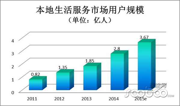 本地生活服務市場用戶規(guī)模增長持續(xù) 2015年達3.67億人
